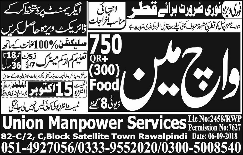 JOB FOR QATAR 12-10-2018 ضرورت براۓ قطر