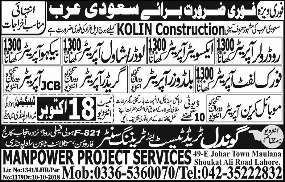 JOB FOR SAUDI ARABIA 13-10-2018 TO 18-13-2018