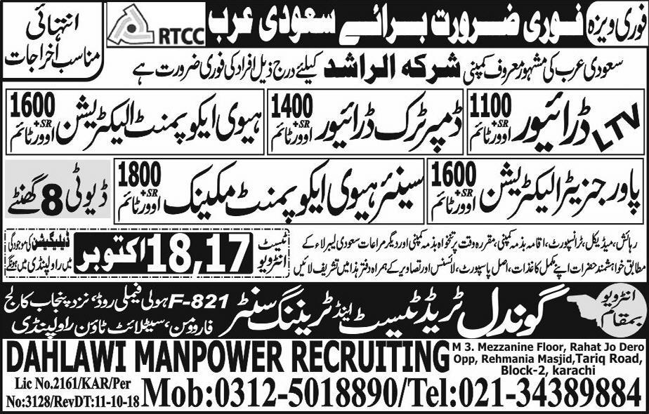 JOB FOR SAUDI ARABIA 15-10-2018