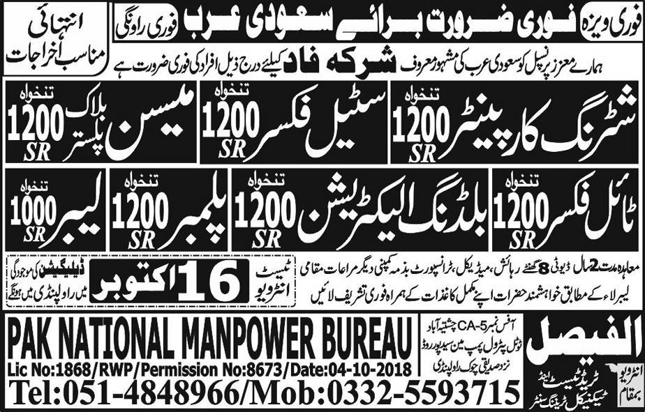 JOB FOR SAUDI ARABIA 16-10-2018