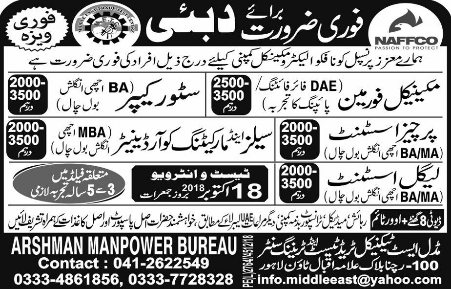 Job For UAE 12-10-2018