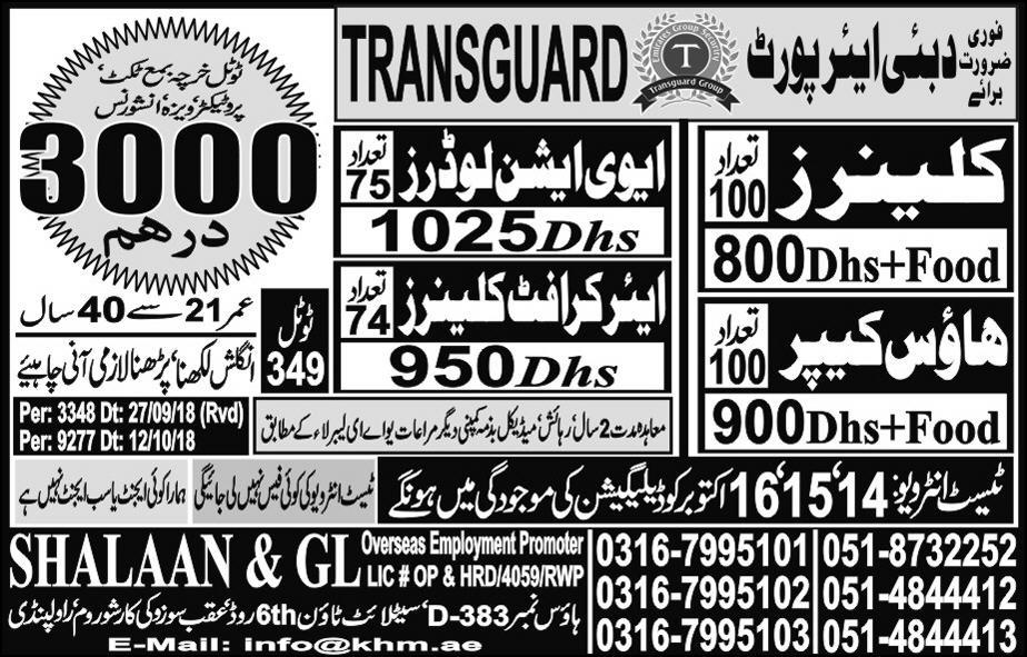 JOB FOR UAE AIRPORT 14-10-2018 TO 16-10-2018