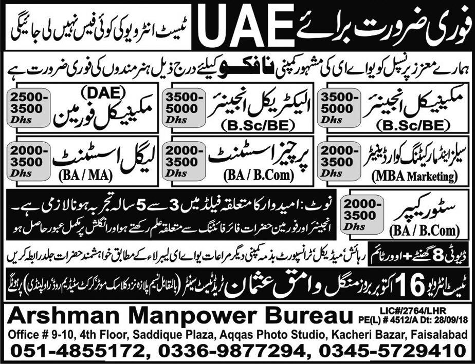 JOB FOR UAE (ENGINEER) 12-10-2018